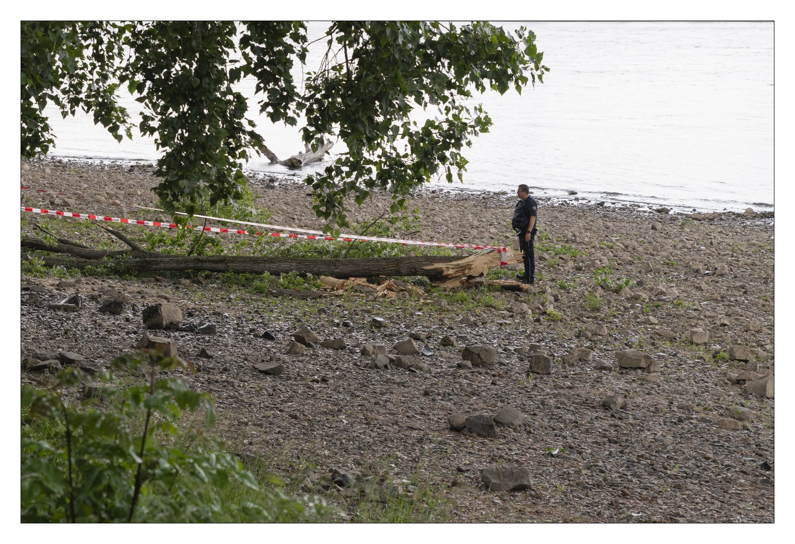 Vor Ort zeigte sich, dass Rettungsdienst und Polizei bereits das Nötigste getan hatten: Die verletzte Frau war versorgt und auf dem Weg ins Krankenhaus. Zurück blieb der Ast – ein mächtiges Stück einer Pappel auf dem wegen Niedrigwasser breiten Strand des Rheins. Es stellte sich die Frage, ob der Leinpfad nun komplett gesperrt werden muss.
