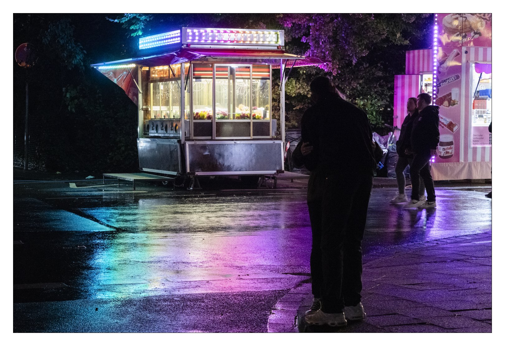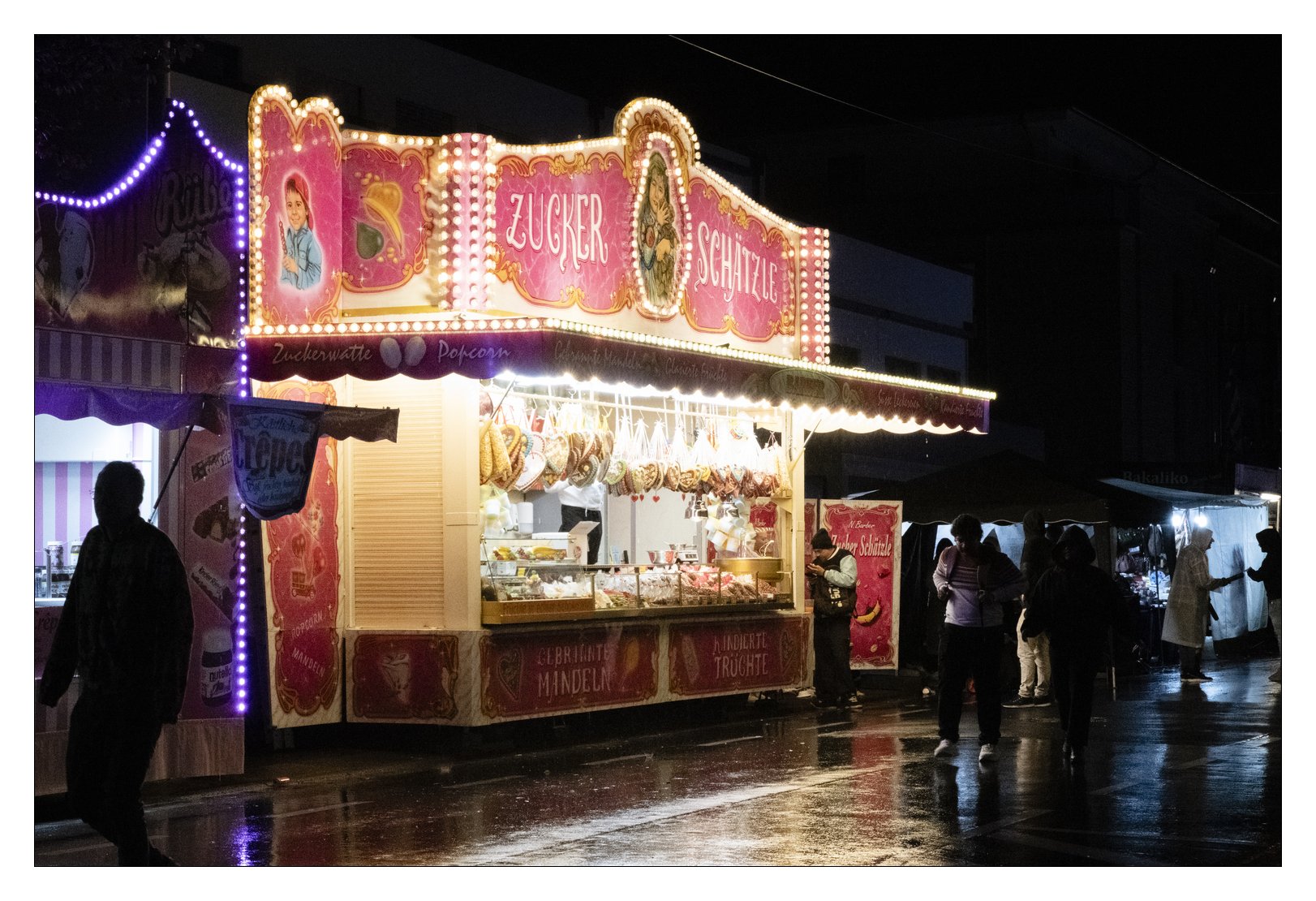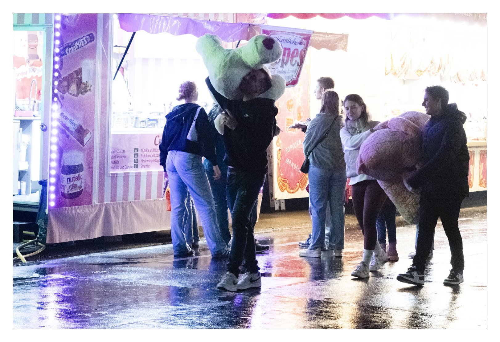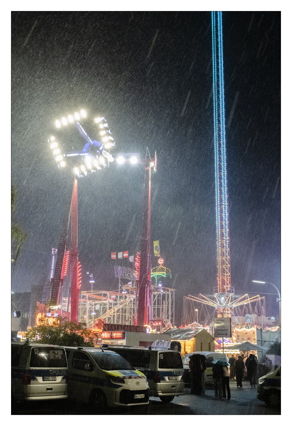 Am Samstagabend setzte dann ein kräftiger Regen ein. Für mich bot er die Gelegenheit, Aufnahmen vor, während und nach dem Schauer zu machen – mit ganz eigenen Stimmungen, die das Bild von Pützchens Markt noch einmal um besondere Facetten erweitern.
