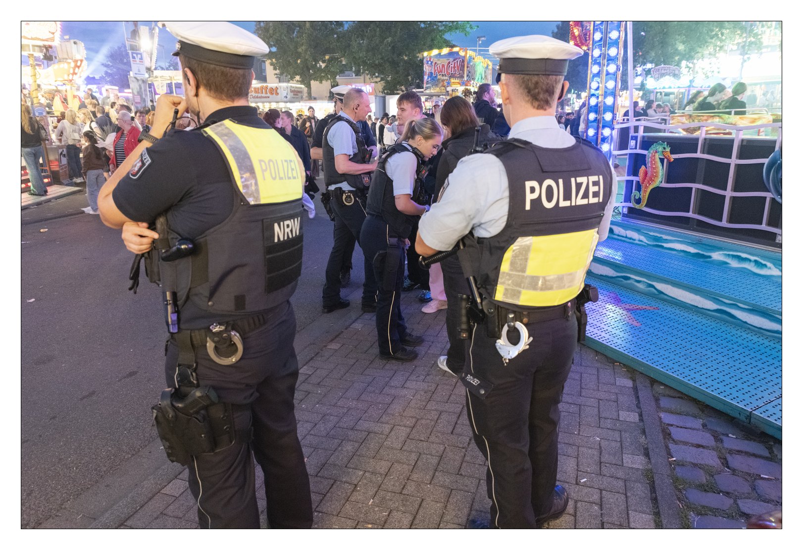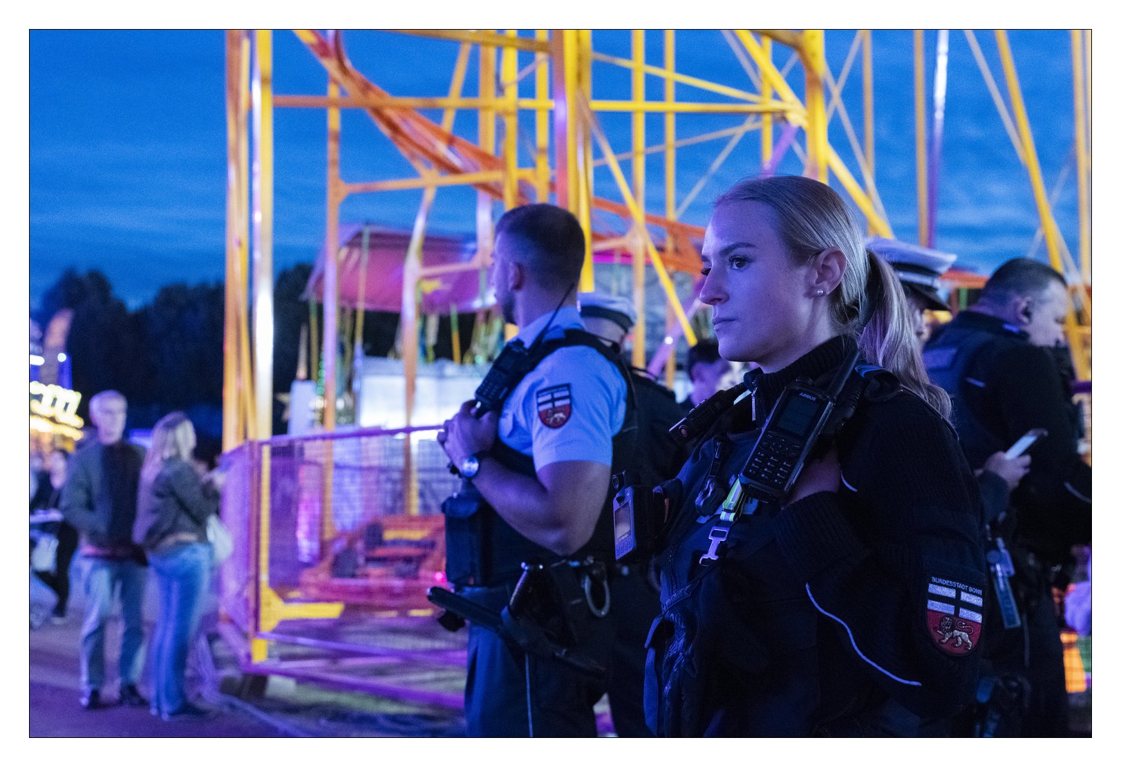 Ich durfte in diesem Jahr vom Bezug der Leitstelle im Anbau der Marktschule am Donnerstagnachmittag bis zum Ende der Kirmes am Dienstagabend dabei sein. Abends sind auf dem Gelände gemischte Streifen unterwegs: Polizei und Ordnungsamt gemeinsam, meist in Teams von vier bis sechs Kräften. Ihre Aufgaben reichen vom Jugendschutz – insbesondere beim Alkoholkonsum – über Kontrollen im Bereich Betäubungsmittel bis hin zu Hilfestellungen auf dem Gelände. Auch die Sicherung der Wege während des Feuerwerks gehört dazu, ebenso wie die Durchsetzung der Sperrstunden. Denn nicht alle Fahrgeschäfte beenden zur vorgesehenen Zeit ihre letzte Fahrt. Offiziell heißt es in der Pressemitteilung der Stadt Bonn, Pützchens Markt 2025 sei aus Sicht des Kommunalen Ordnungsdienstes und des Verkehrsaußendienstes eine „ruhige Veranstaltung mit einer in Summe überschaubaren Einsatzlage“ gewesen.