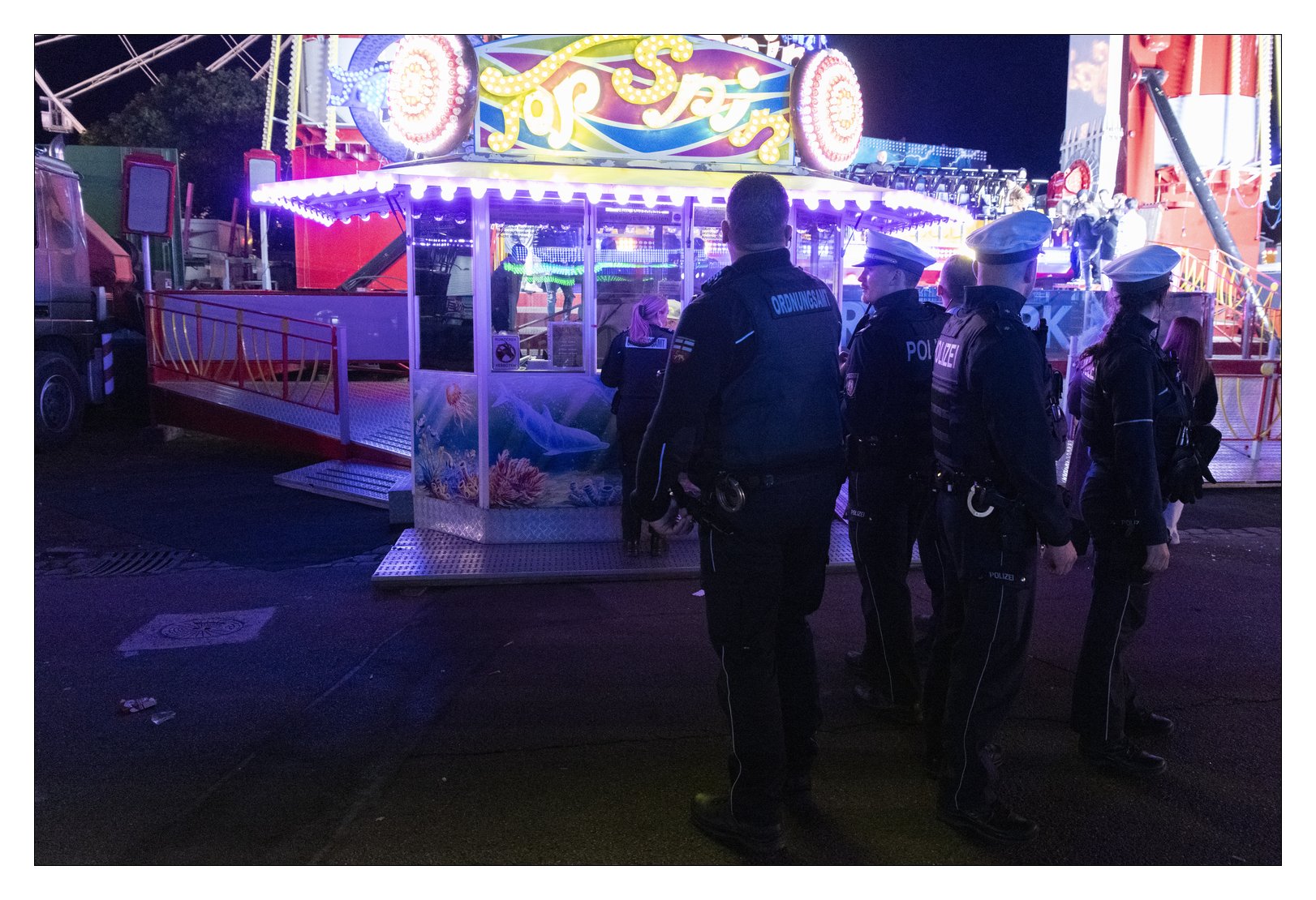 Doch so eine Großkirmes bietet auch abseits der Einsätze unzählige Eindrücke. Schon in der langen Aufbauphase zeigt sich die besondere Atmosphäre: Fahrgeschäfte wie der „Breakdance“, noch im Reparaturbetrieb befindliche Autoscooter, die Dekoration von Unmengen an Süßwaren, ein verschlossenes Kassenhäuschen oder die „Bayernfesthalle“, die auf die Massen wartet. Auch diese Momente gehören zum Bild von Pützchens Markt – bevor die Lichter angehen und sich unzählige Menschen zwischen Fahrgeschäften, Buden und Festzelten drängen.